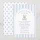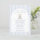 Einladung zur Babyparty "Kleiner Matrose" | Klassischer Bär mit blauen Streifen im Wasserfarblook - Feiern Sie die bevorstehende Ankunft Ihres kleinen Schatz mit zeitlosem, maritimem Charme. Diese Einladung zur Babyparty "Kleiner Matrose" zeigt sanfte, blaue Wasserfarbstreifen, eine süße Illustration eines Matrosenbären und klassische Typografie für ein Aussehen, das sowohl elegant als auch herzlich wirkt.