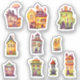 Niedliche und skurrile Häuser Aufkleber. Sie können Text hinzufügen.