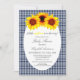 Eine kleine Sonnenblume ist auf dem Weg, eine Babydusche mit kariertem Hintergrund zu machen