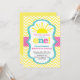 Eine helle und sonnige, gelbe Zickzack Little Sunshine First Birthday Party Einladung, die perfekt für die erste Geburtstagsparty Ihres kleinen Mädchens ist! Das Design ist gelb, Zickzack mit einem rosa Polka Dotband und einem türkisfarbenen Rahmen mit niedlichem Sonnenschein.