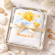 Eine charmante, sonnige Illustration mit einer lächelnden goldenen Sonne, die über flauschigen blauen Wolken mit winzigen leuchtenden Sternen aufgeht und einem süßen Teddybär, der zwischen den Wolken sitzt. Die warme Wasserfarbpalette und die weiche Kinderzimmer-Kunst schaffen eine fröhliche Atmosphäre, die perfekt für Babypartys ist. Dieses spielerische Design unterstreicht die besondere Rolle der werdenden Mutter und fügt Babyshower-Partys und Feierfotos einen hellen, fröhlichen Touch hinzu.