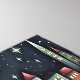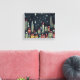Eine Stadt wie eine Illustration in einem Kinderbuch. Farbenfrohe Häuser unter einem Himmel voller funkelnder Sterne. Friedliche nächtliche Landschaft. Flachbild-Design, 2-dimensional, ideal als Hintergrund, zurück spritzen, wie eine perfekte Szene. Erstellt mit KI.