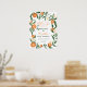 Botanische Zitrusfrüchte Orangen kleine Süsse Babydusche Begrüßungsschild mit hübschen Orangen, Clementinen Zitrusfrüchte Illustration, grüne Äste und Blätter mit weißen Blume und ein modernes Schriftzeichen-Schriftart auf Weiß . Mit einem hübschen Zitrusklementin-botanischen Muster an der Rückseite.