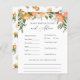Babyduschberatung und Vorhersage Karte mit Aquarellorangen und Grünpflanzen. Eine unterhaltsame Art, mit den Gästen während der Babydusche zu interagieren. Entspricht der Vintagen Clementine und Greenery Collection im Adore Paper Co Zazzle Shop.