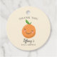 Niedliches Thema "kleine Süsse" Baby Dusche blauen Gefallen-Tag mit einer Illustration einer lächelnden mandarinen Orange mit einem grünen Blatt. Im Text oben steht "Danke". Passen Sie dieses Produkt an, indem Sie unten Ihren Namen hinzufügen. Ideal für eine geschlechtsneutrale Dusche.