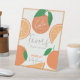 Diese niedliche und moderne "kleine Süsse ist auf dem Weg" Babydusche bevorzugt das Schild mit Orangen und orangefarbenen Scheiben auf einem cremefarbenen Hintergrund, gerahmt durch eine helle orangefarbene Grenze. Personalisieren Sie es für Ihre Bedürfnisse. In meinem Geschäft finden Sie passende Produkte.