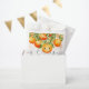 Kleine Süsse orangefarbene Babydusche mit niedlichem Gesicht auf orangefarbenem Hintergrund und einer kleinen Süsse. Diese bezaubernden kleinen Süsse Babydusche Gefälligkeitstaschen können mit Text personalisiert werden.
