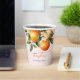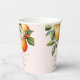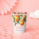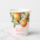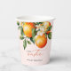 Kleine Süsse Orange Clementine Baby Shower Fevor Papier Becher bietet ein schönes Bouquet von Aquarellorangen und Blüten zusammen mit eleganten Kalligrafien Typ.
