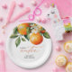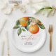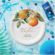 Kleine Süsse Orange Clementine Baby Shower Fevor Paper Teller verfügt über einen wunderschönen Blumenstrauß mit Aquarellorangen und Blüten sowie eleganten Kalligrafietyp.