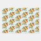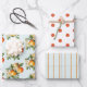 Kleine Süsse Orange Clementine Dots Baby Shower Wrapping Paper Sheets verfügen über einen wunderschönen Blumenstrauß mit Aquarellorangen und Blüten sowie einen niedlichen Polka Dot und einen lustigen Streifen.