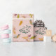 Vögel, Äste und Blume auf weißem, pfirsichfarbenem und rosafarbenem Hintergrund.
