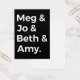 Meg & Jo & Beth & Amy, die Hauptfiguren von Little Women, ein berühmter Roman von Louisa May Alcott geschrieben.