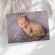 Ein hübsches, weißes Skript-Design mit einem hübschen, neu geborenen Baby-Foto, das Bild und Textdetails dieser Karte können personalisiert sein.