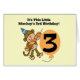 Kleiner Affe 3. Geburtstag Shirts, Magnete, Karten, Aufkleber, Tasse und mehr mit einem niedlichen Affen in einem Partyhut mit einer großen Kerze und Text, der lautet: "Es ist der 3. Geburtstag dieses kleinen Affen!".