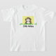 Ein cool aussehender Affe auf einem gelben Hintergrund, grüne Weinberge um ihn herum. Eine Banane in seinem Fell. Sagt "Kleiner Affe". Ein amüsanter T - Shirt mit wilden Tieren.