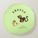 Rundkissen mit lustigem kleinen Affen und Banane auf hellgrünem Hintergrund