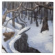 Kleiner Bach im Winterschnee mit dunklem Wasser Fliese
