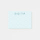 Erstellen Sie Ihre eigenen personalisierten Schreibwaren-Mitteilungskarten mit einem Schachbrett-Muster mit Kalligraphie für ihren Namen. Sie können die Pastellblau und Weiß in der Grafik des Karos anpassen. Ändern Sie den Stil, die Größe und die Farbe des schwarzen Schriftartes entsprechend Ihrem persönlichen Stil.