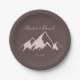 Diese klare Hochzeitskuchenplatte aus dem Gebirge ist perfekt für einen rustikalen Hochzeitsempfang. Das Design besticht durch einen idyllischen, beigefarbenen Berg in Aquarelltönen. Machen Sie es sich selbst, indem Sie die Namen der Braut und Bräutigam und Hochzeitstag.