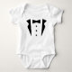 Ein Design mit einer schlichten, stilvollen Kontur einer Gentleman-Tuxedo-Jacke mit schwarzer Bogen-Krawatte und Knöpfen. Wenn der Kleine dieses Design trägt, wird er in einen kleinen Gentleman für Hipster verwandelt. Ein niedliches, lustiges, neues und skurriles Design für Baby Jungs. Es kann sogar für formelle Anlässe vergehen, wenn das Kleine nicht zu bequem zu viele Schichten trägt.