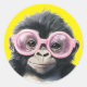 Kleiner Gorilla mit rosa Brille Gelber Hintergrund Runder Aufkleber