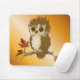Die niedliche Herbstszene ist mit einer kleinen Schüssel versehen, die auf einem Ahornzweig steht und Blätter mit Herbstfarben auf goldbraunem Hintergrund zeigt.