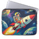 Kleiner Junge auf einem Raketenschiff, der durch d Laptopschutzhülle
