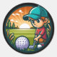 kleiner Junge, der versucht, auf Golfball zu schla Runder Aufkleber