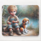 Kleiner Junge fischen mit seinem Beagle Mousepad