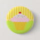 Der Kuchenknopf zeigt einen köstlichen schauenden kleinen Kuchen und einen netten Limonen grünen Hintergrund mit gelben Elementen.