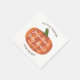 Diese bezaubernden Herbst-Babydusche-Servietten verfügen über einen niedlichen Kürbis und die Worte "EIN KLEINES PUMPKIN IST AUF DEM WEG!" in Braun und den Namen der Mutter-zu-sein und das Baby-Duschdatum in Weiß. Passen Sie alle Formulierungen dieses Designs an.