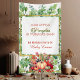 Mach es offensichtlich, zeige es mit diesem grünen Herbstbanner. "Unser kleiner Kürbis wird EINS" 1. Geburtstagsbanner für Ihre Gäste. Beeindrucken Sie sie mit dem üppigen grünen Kranz und den lebendigen Herbstkürbissen. Das Design enthält Herbstlaub, einen rechteckigen grünen Kranz und farbenfrohe Kürbisse, um die Farben des Herbstes zu feiern. Die Illustration verwendet moderne Schrift und Typografie, die leicht angepasst werden kann.