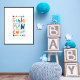 Niedliche Typografie der "Kleine Menschenhöhle" in anpassbaren Farben. Diese sind marineblau, dunkelorange und hellorange, grau, aquamarin und wasserblau, aber man kann sie mit der Zimmerdekoration Ihres kleinen Jungen kombinieren.