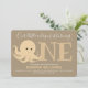 Und unser kleiner Oktopus verwandelt eine erste Geburtstagseinladung für ein Baby. Diese Einladung ist sandig braun und weiß mit dem Wort "eins" in großen Buchstaben mit einer lächelnden Oktopus-Abbildung als erster Buchstabe des Wortes. Einfach anpassen, diese Einladung, fügen Sie sie in Ihren Warenkorb, und glücklicher Geburtstag zu Ihrem wunderbaren Baby! Kleiner Oktopus, der ein Tier zum ersten Geburtstag einlädt | ©Melissa Patton - Künstler/Illustrator