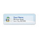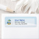 Ein kleiner Pinguin-Cartoon sitzt und hält einen Schneeball.