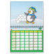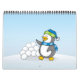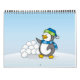 Kleiner Pinguin mit schneebedeckten Kugeln Kalender