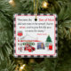 Kleiner roter LKW mit Snowfall-Service-Station - mit dem original "Little Red Truck" Kunstwerk von Rick Ellinger aus seiner Kollektion "Little Red Truck Country Village". Text: "Denn auch der Sohn des Menschen kam nicht serviert, sondern dienen, und sein Leben als Lösegeld für viele zu geben. Mark 10:45".