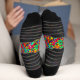 Ich finde die Socken sehr bequem, das Schwarz ist sehr hart. Sehr schöner Druck, keine fehlprägung