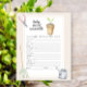 "Ein kleiner Spross ist unterwegs". Feiern Sie mit diesem keimenden Baby Dusche Party! Wasserfarben sprießen in einem Topf, eine Rake, eine Gießkanne und schneidende Scheren (Schere). Antworten: KREISE, KREUZEN, SCHNULLER, FLASCHE, NACHTLICHT, LULLABY, STROLLER, EPIDURAL, BURP, HOCHSTUHL, DIAPER BAG, SCHWIMMBAD
