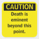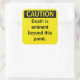 Kleiner Vorsicht Parody-Warnaufkleber. Der Tod ist weit über diesen Punkt hinaus bedeutsam. Fügen Sie etwas Spaß in Ihr Umwelt-Gesundheits- und Sicherheitsprogramm ein.