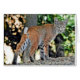 Ein kleiner Bobcat gegen Bäume und gefallenes Blätter.