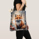 Ein lieblicher kleiner, roter Fuchs sitzt zwischen zwei immergrünen Bäumen, mit Geschenkpackungen zu seinen Füßen, und Schnee fällt sanft auf diese süße Urlaubstote Tasche. Ideal für alle, die Tiere und Natur Lieben.