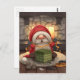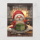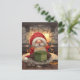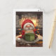 Kleiner Weihnachtsmann verpackt ein Geschenk Postkarte