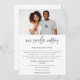 Für Zeiten, in denen eine gesellschaftlich distanzierte Hochzeitsfeier notwendig ist und Sie Ihren Gästen gelassen werden möchten, dass sie sich herunterladen und zum Livemeaming einladen, steht in diesem zeitgenössischen Design Ihr Foto ganz oben, und ein stilvolles Handschriftenskript mit Unsere kleine Hochzeit darunter. Die Erholung des Textes können Sie einfach mit Ihren Daten personalisieren.