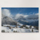 Kleines Dorf mit Dolomitbergen im Schnee Puzzle