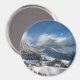 Kleines Dorf mit Dolomiten Bergen im Schnee Magnet
