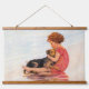 Kleines Kind Schöne Vintage Illustration Wandteppich Mit Holzrahmen
