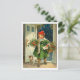 Kleines Mädchen, das am Weihnachtsabend mit ihrem Postkarte