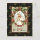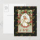 Vintage Kunstwerke mit einem kleinen Mädchen in gedecktem Wintermantel. Die Umgebung ist mit Heilig- und Beerenbeeren bedeckt, und der Hintergrund dahinter