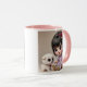 Ein kleines Mädchen mit glänzenden Augen und glänzender Ausdrucksweise, das mit Begeisterung neben seinem süßen weißen Welpe sitzt, der bösartig aussieht. In einem eleganten violetten Kleid mit fröhlichen, mit feinen Spitzen umschlossenen Ärmel zeigt sie einen raffinierten und verzauberten Stil. Sein sanft mit roten Rosen und goldenen Blättern ausgestattetes Stirnband sublimiert sein schwarzes Haar, das durch das Quadrat geschnitten wurde, und fügt seinem fröhlichen Aussehen eine ausgefeilte Taste hinzu. Ihr Welpen, zusammen mit einem kleinen roten Knoten um den Hals, stärkt die visuelle Harmonie und die warme Atmosphäre der Bühne. Die Palette weiblicher Farben und sorgfältig ausgearbeitete Details schaffen eine poetische und feeder Stimmung, perfekt für eine inspirierte Illustration der Welt der Sammlerpuppen und des Kawaii-Stils.